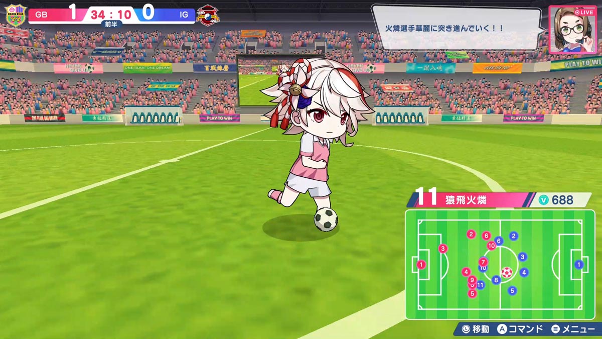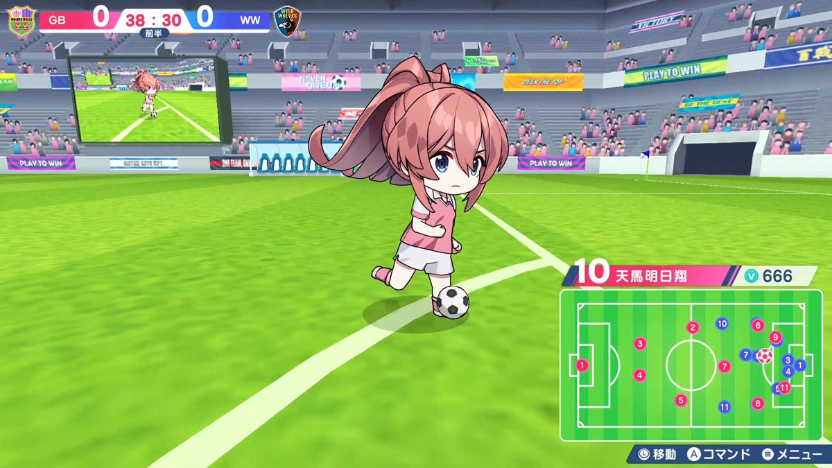 フィールド上の選手たちは常にリアルタイムで動き続け、プレイヤーの指示ひとつで試合が大きく動く!